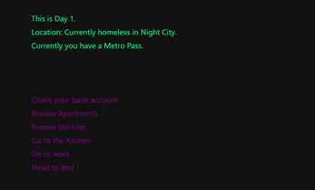 Make your way up is a cyberpunk game where you literally make your way up to better things! There's no end game as this was just a little project c: